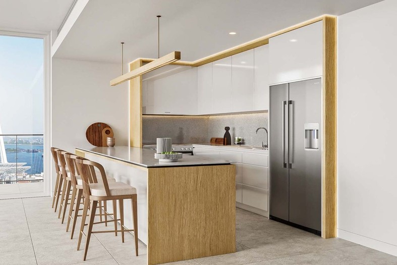 The residential building has a grand and inviting entrance experience through the main lobby. The total number of residences in the complex constitutes 672 and all the exquisite apartments will offer amazing sea views.