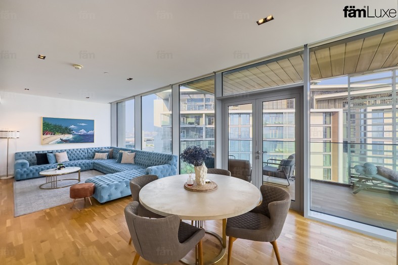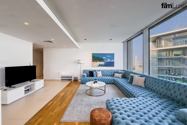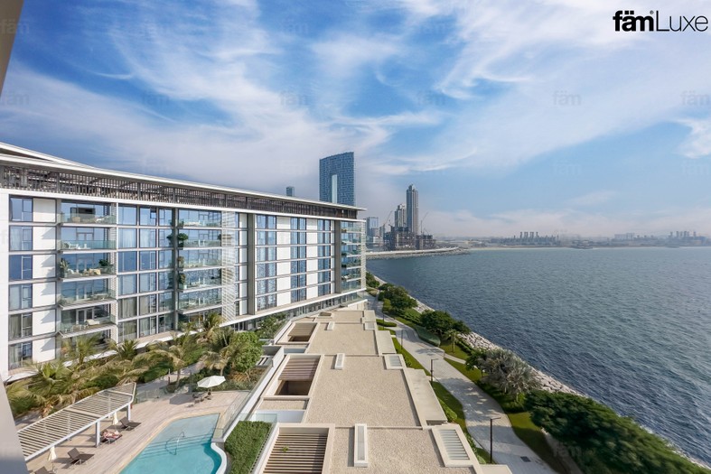 Bluewaters Residences is a high-end residential development on the man-made Bluewaters Island in Dubai, offering 1-4 bedroom apartments, 17 townhouses, and four luxury penthouses with panoramic views of the Arabian Gulf and the city. Located off the coast of Jumeirah Beach Residence (JBR), the community features contemporary architecture, a focus on waterfront living, and access to numerous amenities including shops, restaurants, gyms, swimming pools, and green spaces. It is also home to the world's largest observation wheel, Ain Dubai, and is a popular destination for both residents and visitors.