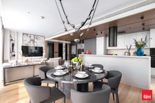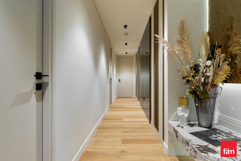 Spanning 2,045 sq. ft., the apartment features elegant interiors, premium finishes, and abundant natural light throughout. The modern kitchen and living areas flow seamlessly, while all bedrooms are generously sized, complemented by 4 luxurious bathrooms and a dedicated maid’s room.